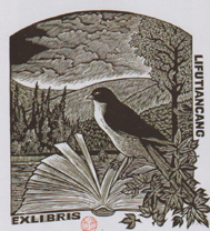 一、木刻藏书票。这是从上世纪三十年代开始,画家运用最多的一种形式。一般是黑白分明的单色木刻,有的粗犷奔放,富有力度,有的精雕细刻,纤细入微,都表现出画家的匠心独运、简洁明快的刀法。
