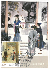 我整理现有的红楼梦邮品,更多的还是极限明信片。作为制作极限明信片载体的美术明信片不少,王叔晖、华三川、刘旦宅、戴敦邦等名画家先后有关于《红楼梦》的画作被制作成明信片,邮政部门还发过《红楼梦》题材的贺年有奖明信片,这些都是制作极限明信片的优质载体。《红楼梦》由于是文学作品,极限明信片的“定戳”成为争议,有的选择作者祖籍地或居住地,但多数人认为邮戳盖小说中的故事发生地“金陵”,即今天的南京较为合适。