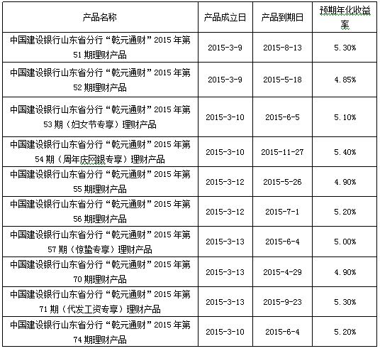 中国建设银行山东省分行“乾元通财”2015年10期理财产品成立公告
