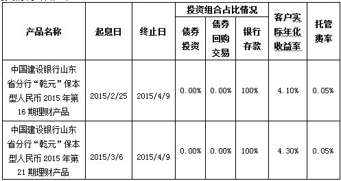 根据与投资者的约定,中国建设银行山东省分行发行的下列理财产品已经到期理财产品并完成资金兑付,现将有关情况公告如下: