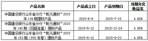 中国建设银行山东省分行“乾元通财”2015年第139 140 153期理财产品成立公告