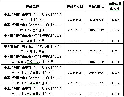 中国建设银行山东省分行“乾元通财”2015年第141 142 143 144 145 146 147 148期理财产品成立公告