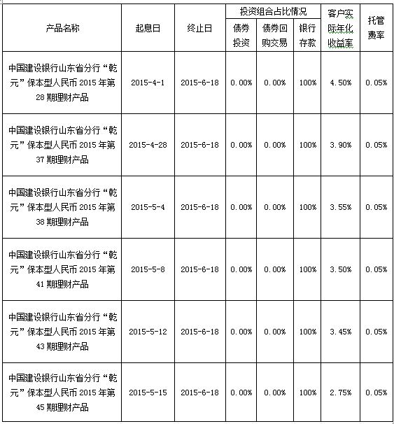 根据与投资者的约定,中国建设银行山东省分行发行的下列理财产品已经到期理财产品并完成资金兑付,现将有关情况公告如下: