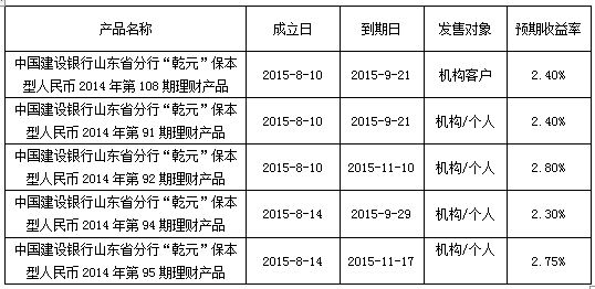 中国建设银行山东省分行“乾元”保本型理财产品成立公告