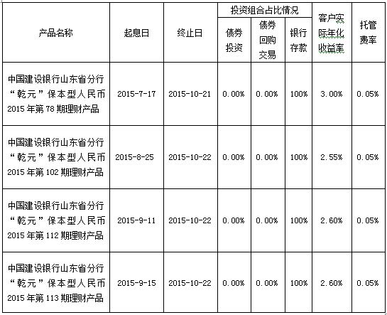 根据与投资者的约定,中国建设银行山东省分行发行的下列理财产品已经到期理财产品并完成资金兑付,现将有关情况公告如下: