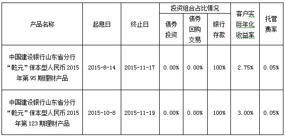 根据与投资者的约定,中国建设银行山东省分行发行的下列理财产品已经到期理财产品并完成资金兑付,现将有关情况公告如下: