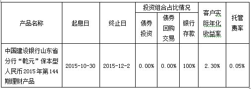 根据与投资者的约定,中国建设银行山东省分行发行的下列理财产品已经到期理财产品并完成资金兑付,现将有关情况公告如下: