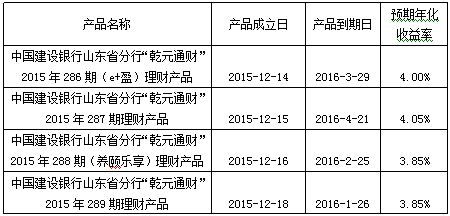 中国建设银行山东省分行“乾元通财”2015年4期产品成立公告