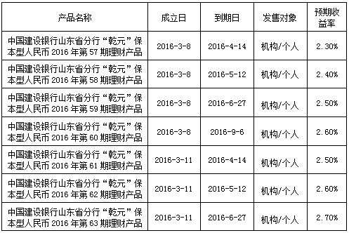 中国建设银行山东省分行“乾元”保本型人民币理财产品成立及到期公告