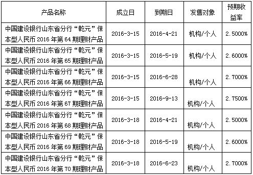 中国建设银行山东省分行“乾元”保本型理财产品成立公告