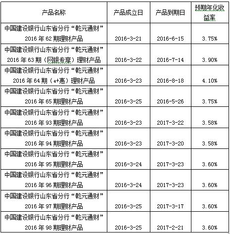 中国建设银行山东省分行“乾元通财”产品成立公告