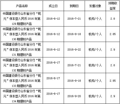 中国建设银行山东省分行“乾元”保本型理财产品到期公告