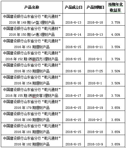 中国建设银行山东省分行“乾元通财”产品成立公告