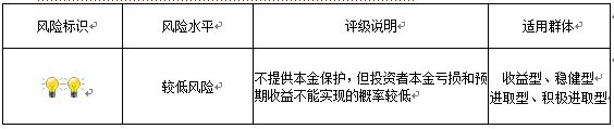 本期产品为非保本浮动收益型理财产品,不保证本金和收益,请您充分认识投资风险,谨慎投资。本期产品期限365天(中国建设银行有权对本期产品进行展期和提前终止),存续期内产品不接受申购或赎回申请。本期产品内部风险评级级别为2盏警示灯 ,风险程度属于较低风险。最不利情况下,资产组合无法回收任何本金和净收益,客户将损失全部本金。产品适合于收益型、稳健型、进取型、积极进取型客户。