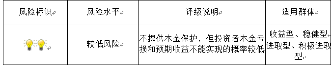 本期产品为非保本浮动收益型理财产品,不保证本金和收益,请您充分认识投资风险,谨慎投资。本期产品期限158天(中国建设银行有权对本期产品进行展期和提前终止),存续期内产品不接受申购或赎回申请。本期产品内部风险评级级别为2盏警示灯,风险程度属于较低风险。最不利情况下,资产组合无法回收任何本金和净收益,客户将损失全部本金。产品适合于收益型、稳健型、进取型、积极进取型客户。