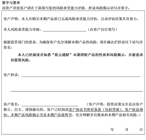 客户声明:投资决策完全是由本单位独立、自主、谨慎做出的。本单位已经阅读客户协议书所有条款(包括背面)、客户权益须知、本期产品风险揭示书及本期产品说明书,充分理解并自愿承担本期产品相关风险。